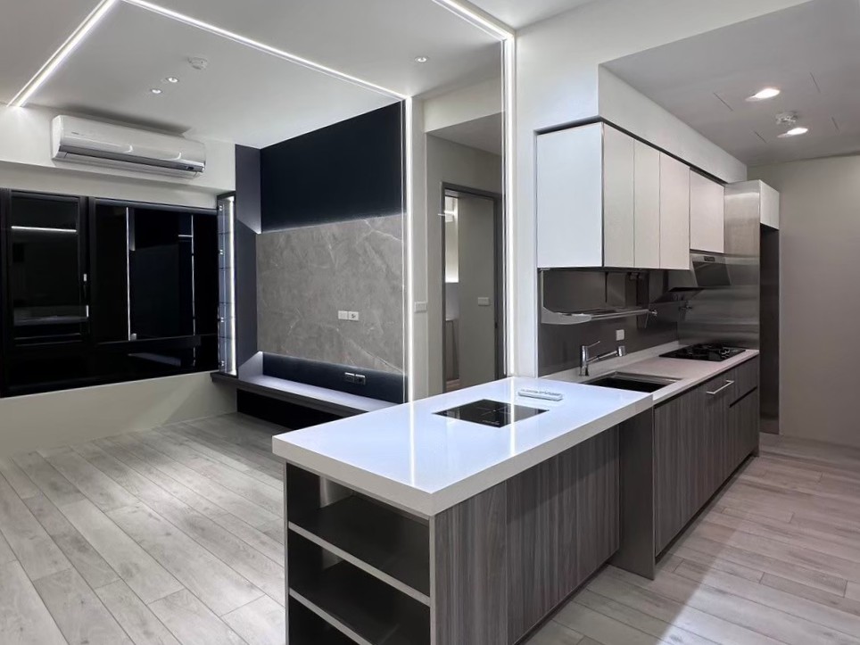 精緻現代沉穩主牆客廳選用灰底白黑紋理大理石作為電視主牆,展現質感與份量感。搭配灰黑白的裝飾面板,結合白色邊框點綴,讓整體視覺更具現代精緻度。色調低調卻不單調,燈光照射下折射出細膩層次,營造大器又具深度的空間氛圍。簡約臥房櫃臥房以木紋衣櫃為主體,保留材質原始的溫潤紋理,營造自然放鬆的睡眠環境。櫃體線條俐落,機能完善,呼應整體現代空間的簡潔風格。木色的加入恰好中和公共空間的冷冽感,使私領域更顯柔和與親近感。亮感廚房面廚房檯面選用亮面黑色大理石,石材中帶有晶亮顆粒,在燈光照射下閃耀細緻光澤,為實用區域增添視覺亮點。整體設計兼具機能性與質感,搭配簡約線條櫃體,讓烹飪空間既現代又具品味,也展現屋主對生活細節的講究。 ...